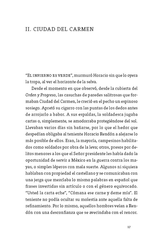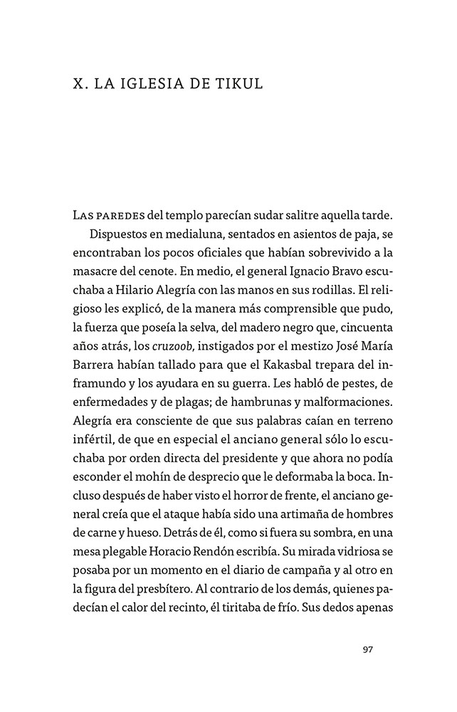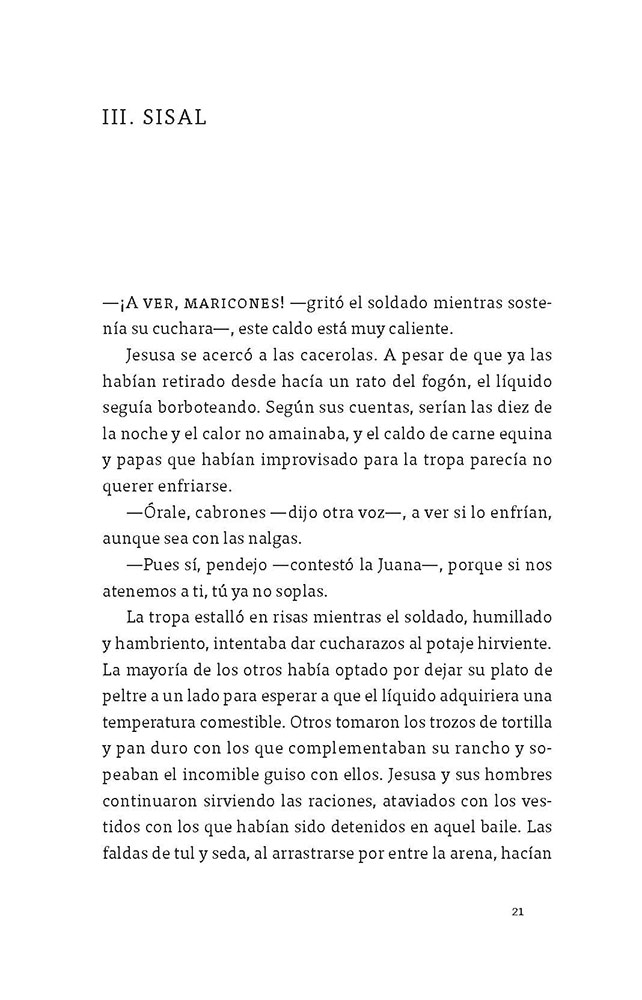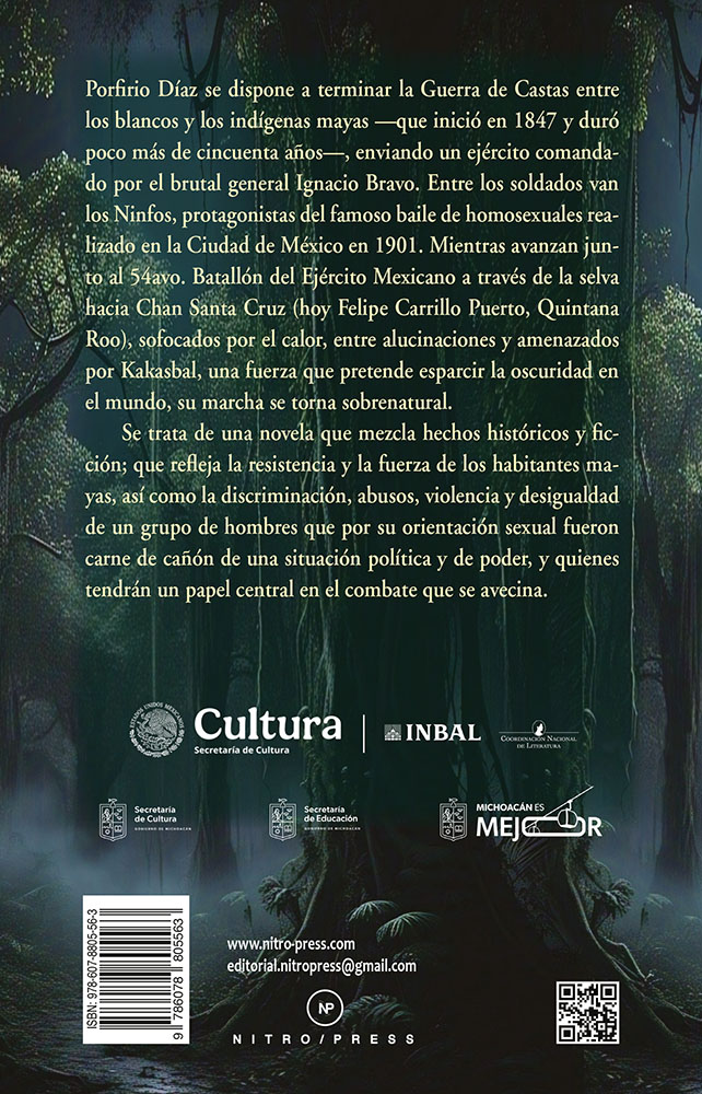 Se trata de una novela que mezcla hechos históricos y ficción; que refleja la resistencia y la fuerza de los habitantes mayas, así como la discriminación, abusos, violencia y desigualdad de un grupo de hombres que por su orientación sexual fueron carne de cañón de una situación política y de poder, y quienes tendrán un papel central en el combate que se avecina.