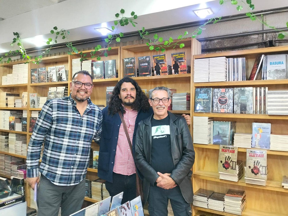 ![]() Autores visitando la librería